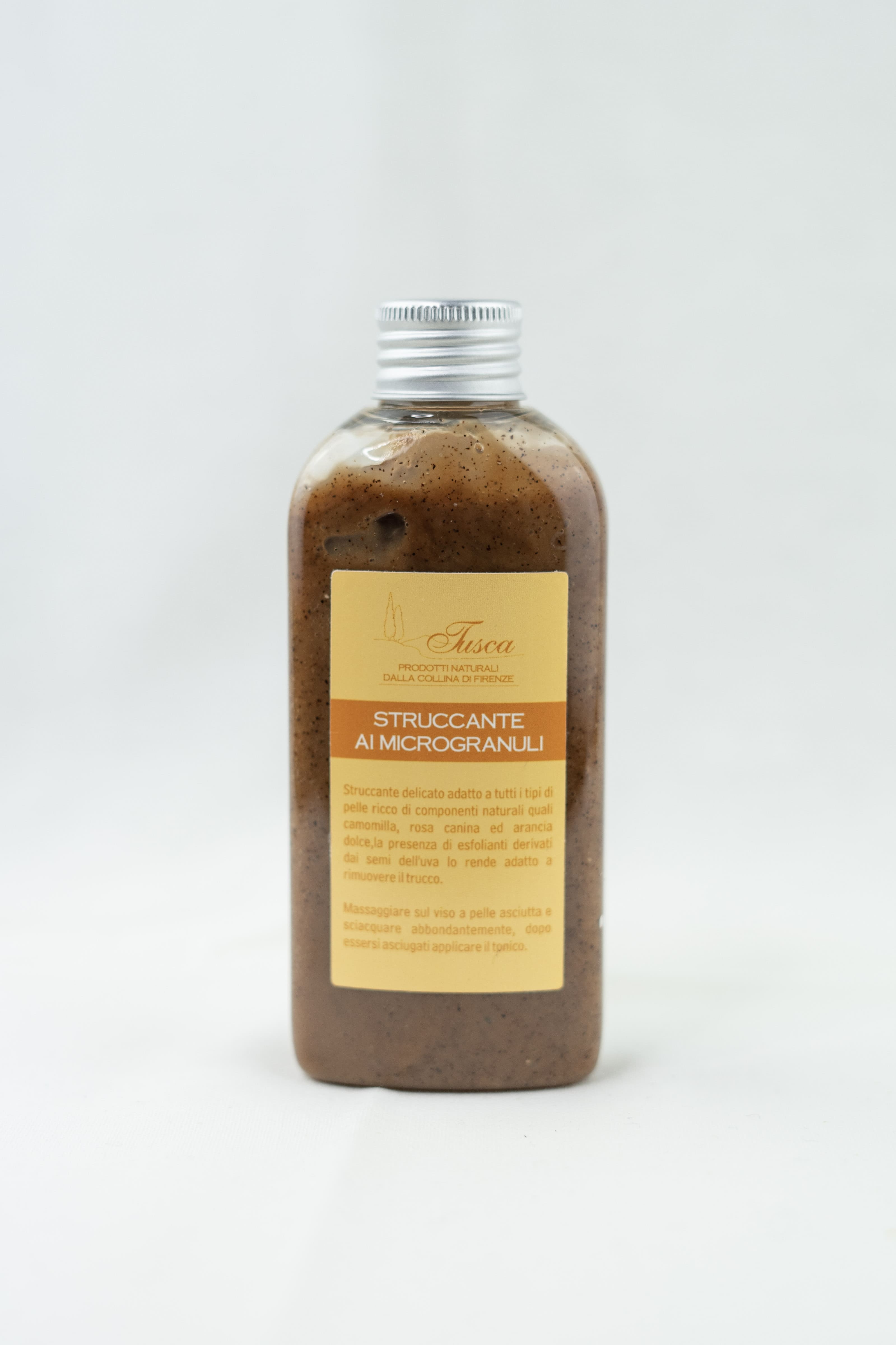 Struccante delicato adatto a tutti i tipi di pelle, ricco di camomilla e rosa canina. Al suo interno sono dispersi microgranuli derivanti dai semi di uva, i quali producono un leggerissimo e piacevole effetto scrub. Massaggiandolo cambierà colore e consistenza, producendo le bollicine che sono capaci di rimuovere il trucco come fondotinta, mascara e eyeliner.